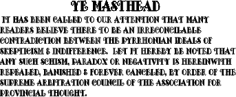 | November 1st, the world will learn the truth about THE JOURNAL OF PROVINCIAL THOUGHT. ______ come for the knowledge will soon be rendered useless. We are ready. |