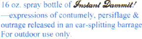 USE WITH CARE: Read all direction and follow faithfully. May create side effects such as bodily injuries, heart attacks, deafness (temporary and/or permanent), shingles, foot-rot. alopecia, rickets, ali-ali, scorseci, excessive weight gain and hypothermia.